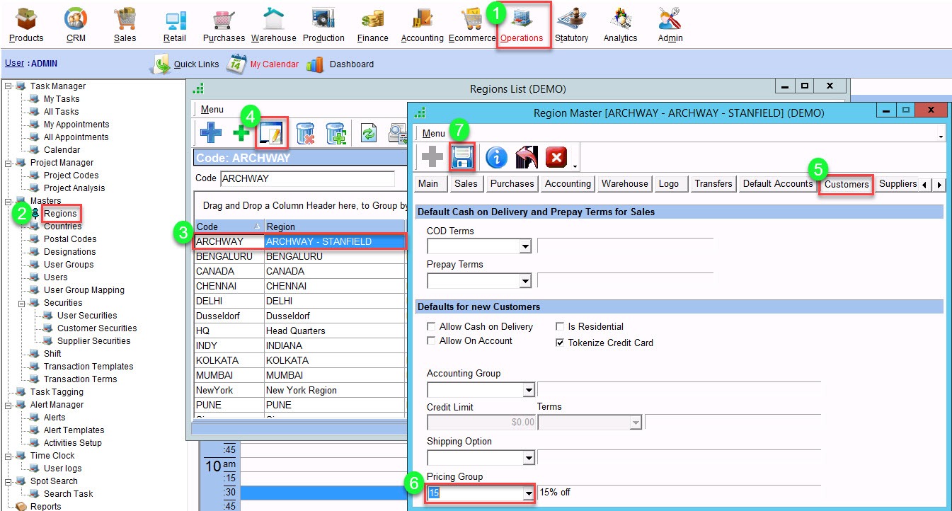 Note: Since the pricing group is assigned/specified for a specific region, the user must be logged into that particular region for the pricing group to be defaulted.