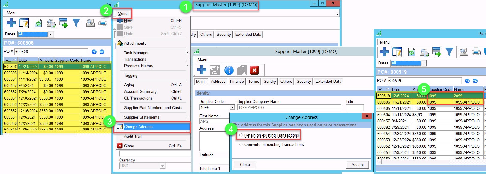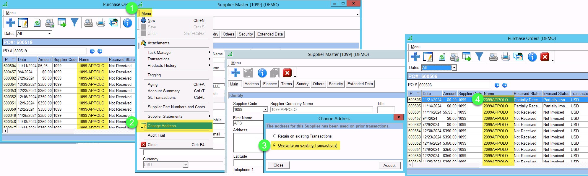 2. Selecting “Overwrite on existing transactions”, all the existing purchase transactions will be updated with the new supplier details