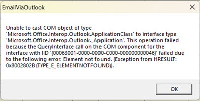 Run Office 365 in Repair mode from Windows > Control Panel > Programs and Features, if the “Unable to Cast COM object of type” error message prompts