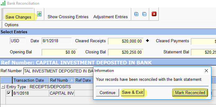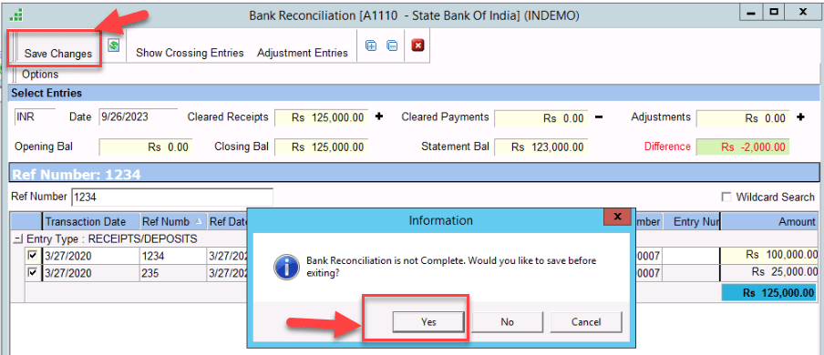 - User Should select “Save & Exit” till all entries reconciliation are completed successfully
