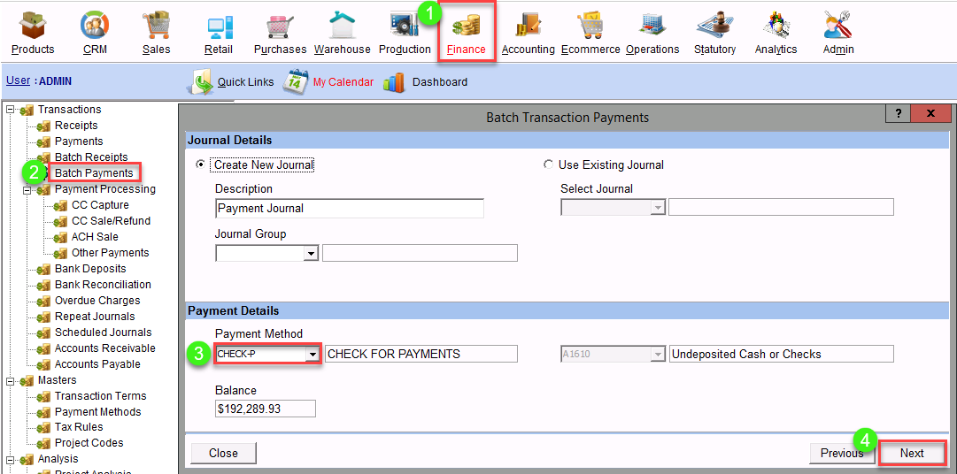 - It Displays the Payment Journal