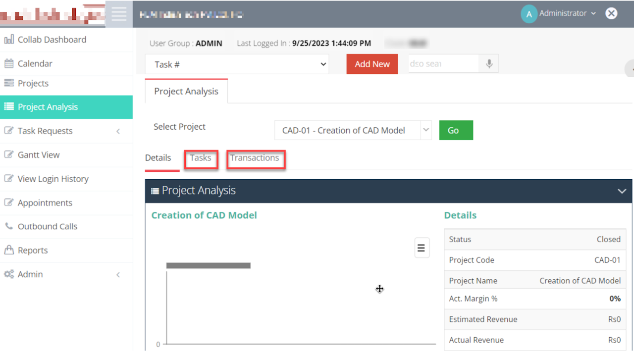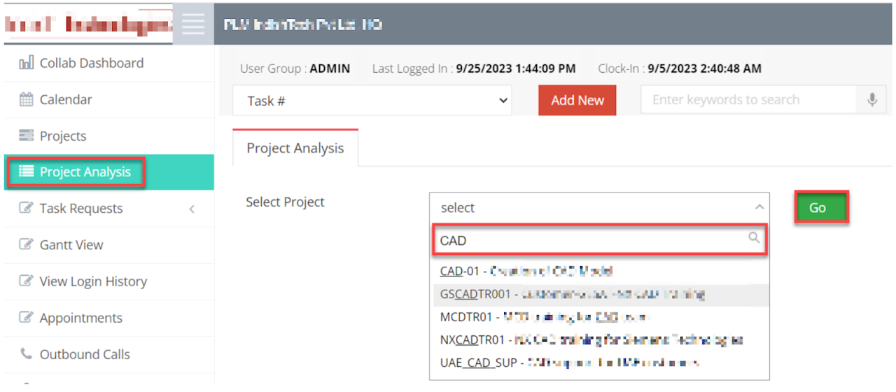 Menu Path : Collaboration > Project Analysis > Select the Project > Go