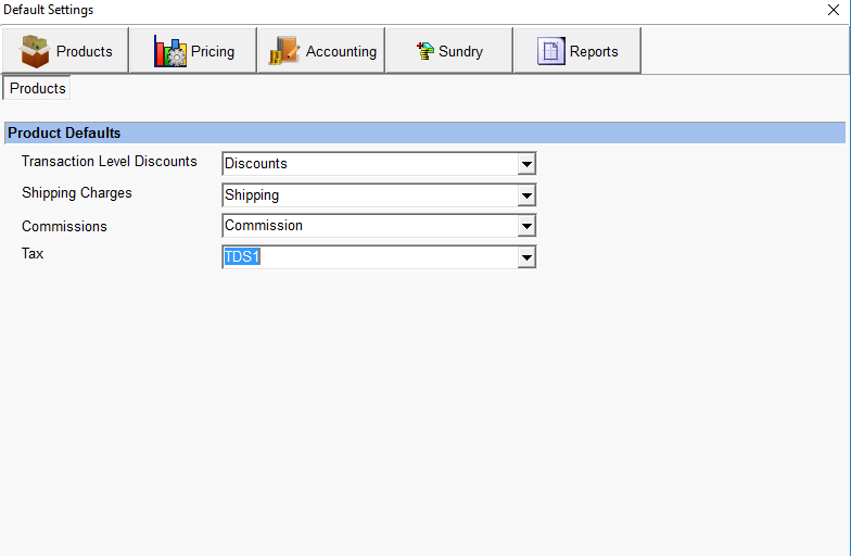 - In the Products Tab, select a service product in the Tax dropdown