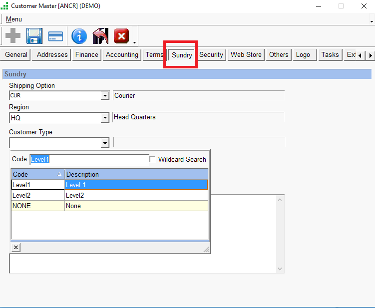 - In the customer Master, Sundry Tab, select this Customer Type and save the Master